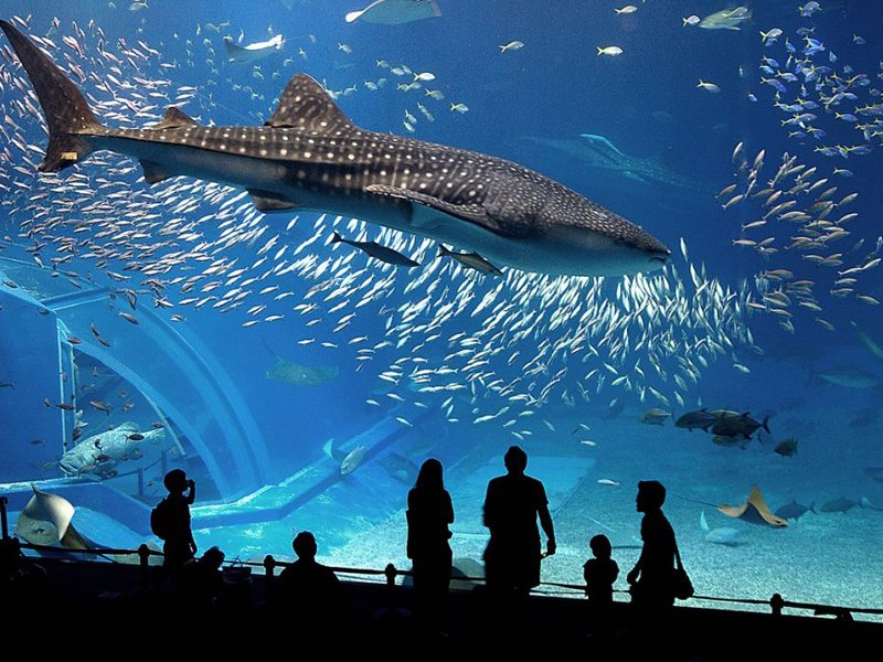التجول بين الأحواض الزجاجية لمشاهدة أنواع متعددة من الكائنات البحرية مثل الأسماك الاستوائية، أسماك القرش ، والراي.