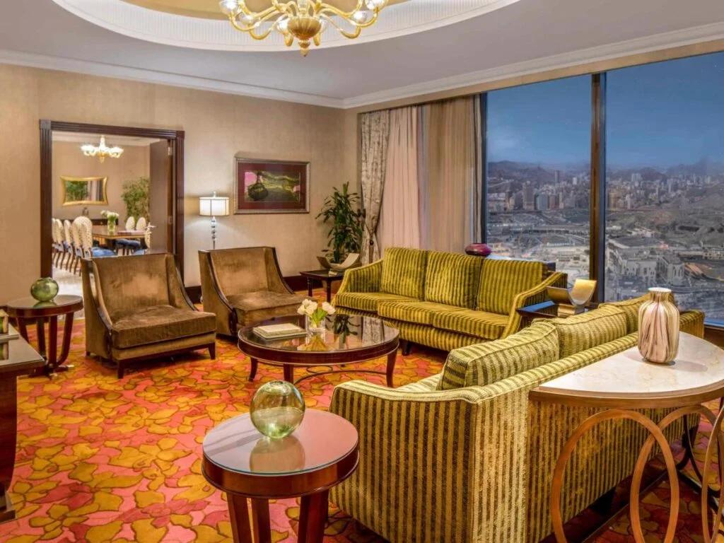 المميزات: يبلغ عدد الأجنحة والغرف به حوالي 1624 ذات أجواء دافئة رائعة، يتميز الفندق بإطلالات مباشرة على الكعبة والمسجد الحرام، وغرف عصرية مريحة مناسبة للعائلات والحجاج مع خدمات راقية تشمل مطاعم داخلية، خدمة غرف، نظافة عالية، وسهولة الوصول للحرم خلال دقائق قليلة، مما يجعله خيارًا ممتازًا لمن يبحث عن راحة وقرب من المسجد الحرام. والجدير بالذكر أن الفندق يقع بالقرب من مطار الملك عبد العزيز الدولي حيث تقدر المسافة بينهم ب75 كم، وقد صنف من بين أفضل فنادق مكة 5 نجوم قريبة من الحرم.