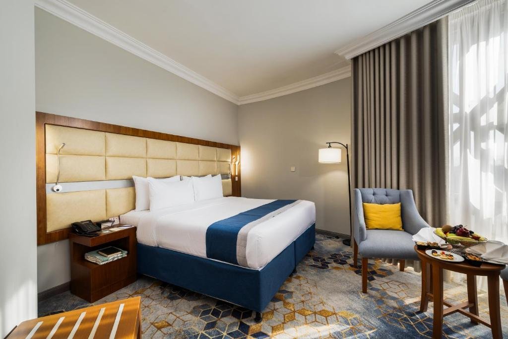 الغرف والإقامة: يوفر الفندق مجموعة متنوعة من الغرف العائلية والفردية، جميعها مجهزة بأسرة مريحة وبياضات عالية الجودة، وشاشات تلفزيونية مسطحة، وخزائن لتخزين الأمتعة. الغرف مكيفة بالكامل وتحتوي على حمامات خاصة مجهزة بلوازم استحمام مجانية. بعض الغرف توفر إطلالة رائعة على المسجد النبوي، ما يضيف لمسة روحانية لتجربة الإقامة.